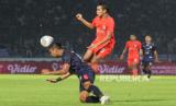 REPUBLIKA.CO.ID, MALANG -- Arema FC mengalahkan Borneo FC dalam laga Final Piala Presiden Leg Pertama di Stadion Kanjuruhan, Malang, Jawa Timur, Kamis (14/7/2022). Arema menang 1-0 atas Borneo FC.
