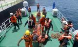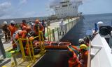 REPUBLIKA.CO.ID, ACEH BESAR -- Tim SAR gabungan mengangkat jenazah warga Filipina, Crispin F Cadiz menggunakan tandu saat dievakuasi dari kapal kargo berbendera Panama MV Lowlands Comfort ke kapal KN SAR Kresna di Teluk Benggala, Aceh Besar, Aceh, Kamis (14/7/2022).