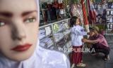 REPUBLIKA.CO.ID, BANDUNG -- Seorang anak bersama orang tuanya mencoba kerudung sekolah di salah satu toko seragam di Jalan Cipaera, Lengkong, Kota Bandung, Jumat (15/7/2022). Pedagang di kawasan tersebut menyatakan, jelang pembelajaran tatap muka tahun ajaran 2022/2023 di Kota Bandung, penjualan seragam sekolah meningkat 75 persen hingga 90 persen atau 150 setel seragam per hari dibandingkan dengan tahun sebelumnya.