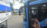 REPUBLIKA.CO.ID, PADANG -- Penumpang menaiki bus Trans Padang koridor V di Jalan Raya Indarung, Padang, Sumatera Barat, Jumat (115/7/2022). Sebanyak 10 unit bus Trans Padang baru resmi beroperasi untuk koridor V rute Imam Bonjol-Indarung, yang sudah dilengkapi dengan teknologi modern sesuai standar yang digunakan negara-negara maju. ANTARA FOTO/Iggoy el Fitra/hp