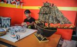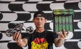 REPUBLIKA.CO.ID, CIMAHI -- Perajin menunjukan tas serta miniatur motor dari kertas koran bekas di bengkel kerja nya di Jalan Permana, Cimahi, Jawa Barat, Jumat (15/7/2022). Berbagai jenis kerajinan daur ulang berbahan dasar kertas koran bekas berupa tas, dompet, wadah buah, hiasan dinding dan aneka miniatur yang dijual dengan harga Rp90 ribu hingga Rp1 juta tersebut telah menembus pasar ekspor di Singapura, Hongkong dan Australia.