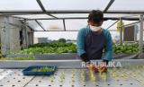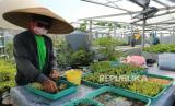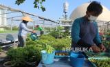 REPUBLIKA.CO.ID, JAKARTA -- Pengurus merawat bibit tanaman yang ditanam di lantai atap Masjid At-Taqwa, Sunter Muara, Jakarta Utara, Jumat (15/7/2022). Pengurus Masjid At Taqwa tersebut memanfaatkan atap masijd untuk lokasi budi daya berbagai macam sayur mayur dan buah-buahan secara hidroponik yang hasilnya dinikmati oleh warga sekitar.