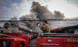 REPUBLIKA.CO.ID, TANGERANG -- Petugas pemadam kebakaran beristirahat saat kebakaran pabrik pipa pvc di Kosambi, Kabupaten Tangerang, Banten, Jumat (15/7/2022). Kebakaran yang diduga terjadi akibat korsleting listrik tersebut masih dalam penyelidikan pihak berwajib.