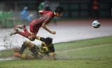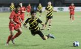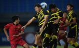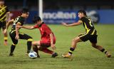 REPUBLIKA.CO.ID, BEKASI -- Pesepak bola Tim Nasional Malaysia U-19 Adam Farhan (tengah) berebut bola dengan sejumlah pesepak bolaTim Nasional Laos U-19 dalam babak final Piala AFF U-19 2022 di Stadion Patriot Candrabhaga, Bekasi, Jawa Barat, Jumat (15/7/2022). Malaysia juara setelah menang dengan skor 2-0.
