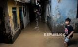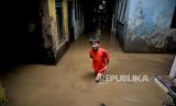 REPUBLIKA.CO.ID, JAKARTA -- Seorang anak melintasi banjir yang merendam kawasan Kebon Pala, Kampung Melayu, Jakarta, Sabtu (16/7/2022). Banjir setinggi 40-170 centimeter tersebut terjadi akibat meluapnya air sungai Ciliwung yang dipicu oleh tingginya curah hujan yang mengguyur wilayah Jakarta, Bogor, dan Depok sejak Jumat (15/7/2022) malam hingga Sabtu pagi.