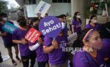 REPUBLIKA.CO.ID, JAKARTA -- Staf dan manajemen BCA Life bersiap melakukan jalan santai usai peluncuran virtual run di Jakarta, Sabtu (16/7/2022). Menyambut hari jadi yang ke-8, BCA Life kembali menggelar acara lari virtual bertajuk AjakTemanmu Ultim8Race 2022 yang diselenggarakan pada 16 Juli hingga 3 Agustus 2022.