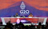 REPUBLIKA.CO.ID, BADUNG -- Menteri Keuangan Sri Mulyani menyampaikan keterangan saat konferensi pers hasil 3rd Finance Ministers and Central Bank Governors (FMCBG) G20 di Nusa Dua, Badung, Bali, Sabtu (16/7/2022). Pertemuan FMCBG Ke-3 berhasil menyepakati sejumlah inisiatif dan kesepakatan terkait persoalan keuangan dunia.