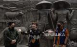 Menteri BUMN Erick Thohir (kedua kiri) bersama Managing Director International Monetary Fund (IMF) Kristalina Georgieva (kiri) dan Menteri Pariwisata dan Ekonomi Kreatif Sandiaga Uno (ketiga kiri) saat melakukan kunjungan di Sarinah, Jakarta, Ahad (17/7/2022). Kunjungan tersebut untuk melihat produk UMKM karya Indonesia yang terdapat di Sarinah. Republika/Putra M. Akbar (FOTO : Republika)