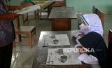 Tiga muird baru kelas 1 mengikuti kegiatan belajar mengajar di SDN Banyurejo 4, Tempel, Sleman, Yogyakarta, Senin (18/7/2022). Mulai pekan ini kegiatan belajar mengajar mulai secara penuh dilakukan. Tahun ajaran 2022/2023 SDN Banyurejo 4 mendapat 2 murid baru dan titipan satu murid. SDN Banyurejo 4 saat ini memiliki 29 jumlah murid. Penyebab sedikitnya murid baru karena desa sekitar sekolah tidak memiliki anak usia masuk SD. (FOTO : Wihdan Hidayat / Republika)