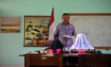 Guru, Jemiran mengajar kelas 1 di SDN Banyurejo 4, Tempel, Sleman, Yogyakarta, Senin (18/7/2022). Mulai pekan ini kegiatan belajar mengajar mulai secara penuh dilakukan. Tahun ajaran 2022/2023 SDN Banyurejo 4 mendapat 2 murid baru dan titipan satu murid. SDN Banyurejo 4 saat ini memiliki 29 jumlah murid. Penyebab sedikitnya murid baru karena desa sekitar sekolah tidak memiliki anak usia masuk SD. (FOTO : Wihdan Hidayat / Republika)