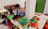 REPUBLIKA.CO.ID, Sejumlah anak sedang bermain di dalam kelas TK Inklusi Bhakti Siwi, Sunter Jaya, Jakarta, di hari pertamanya masuk sekolah, Senin (18/7/2022). TK Inklusi Bhakti Siwi berbasis lingkungan ini menerapkan kurikulum ‘Merdeka Belajar’ yang merupakan satu-satunya TK Inklusi di wilayah Sunter Jaya Jakarta Utara.