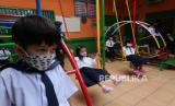 Sejumlah anak sedang bermain di lingkungan TK Inklusi Bhakti Siwi, Sunter Jaya, Jakarta, di hari pertamanya masuk sekolah, Senin (18/7/2022). TK Inklusi Bhakti Siwi berbasis lingkungan ini menerapkan kurikulum ‘Merdeka Belajar’ yang merupakan satu-satunya TK Inklusi di wilayah Sunter Jaya Jakarta Utara. Foto: Darmawan/Republika (FOTO : REPUBLIKA)