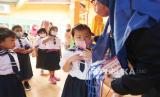 Siswa-siswi memasuki kelas pada hari pertama masuk sekolah di TK Inklusi Bhakti Siwi, Sunter Jaya, Jakarta, Senin (18/7/2022). TK Inklusi Bhakti Siwi berbasis lingkungan ini menerapkan kurikulum ‘Merdeka Belajar’ yang merupakan satu-satunya TK Inklusi di wilayah Sunter Jaya Jakarta Utara. Foto: Darmawan/Republika (FOTO : REPUBLIKA)