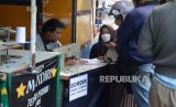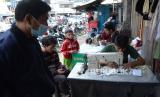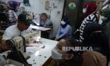 Tukang bordir nama menyelesaikan pekerjaanya di kawasan Pasar Kosambi, Kota Bandung, Senin (18/7). Awal masuk sekolah di tahun ajaran baru membawa berkah bagi tukang bordir nama dan emblem sekolah, mereka diantre warga. Pembuatan bordir nama dihargai Rp 6.000. (FOTO : Edi Yusuf/Republika)