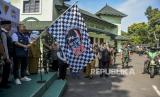 Wali Kota Bandung Yana Mulyana mengibarkan bendera start saat pendistribusian minyak goreng murah (SiMirah) di halaman Kodim 0618/Kota Bandung, Sumur Bandung, Kota Bandung, Selasa (19/7/2022). Pemerintah Kota Bandung bersama Kodim 0618/Kota Bandung mendistribusikan sebanyak 2.200 dus atau sekitar 26.400 liter minyak goreng curah dengan harga Rp14 ribu per liter ke seluruh kecamatan di Kota Bandung secara bergiliran. (FOTO : REPUBLIKA/ABDAN SYAKURA)