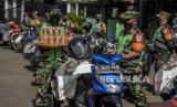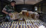 Anggota TNI bersiap untuk mendistribusikan minyak goreng murah (SiMirah) di halaman Kodim 0618/Kota Bandung, Sumur Bandung, Kota Bandung, Selasa (19/7/2022). Pemerintah Kota Bandung bersama Kodim 0618/Kota Bandung mendistribusikan sebanyak 2.200 dus atau sekitar 26.400 liter minyak goreng curah dengan harga Rp14 ribu per liter ke seluruh kecamatan di Kota Bandung secara bergiliran. (FOTO : REPUBLIKA/ABDAN SYAKURA)