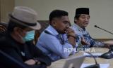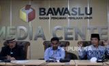 Pendiri Lingkar Madani (Lima) Indonesia Ray Rangkuti (kanan) bersama Sekretaris Jenderal Komite Independen Pemantau Pemilu (KIPP) Kaka Suminta (kiri) dan Direktur Kata Rakyat Alwan Ola Riantoby (tengah) memberikan keterangan terkait pelaporan dugaan adanya kampanye diluar jadwal dan penggunaan fasilitas negara di Kantor Bawaslu, Jakarta, Selasa (19/7/2022). Dalam keterangannya mereka minta kepada bawaslu segera memeriksa aktivitas Zulkilfli Hasan di Lampung pada 9 Juli 2022 lalu. Pengaduan terkait dugaan adanya pelanggaran kampanye di luar jadwal dan penggunaan fasilitas negara dan jabatanya saat berkampanye. (FOTO : Prayogi/Republika.)