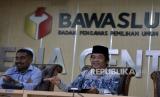 Pendiri Lingkar Madani (Lima) Indonesia Ray Rangkuti (kanan) bersama  Direktur Kata Rakyat Alwan Ola Riantoby (kiri) memberikan keterangan terkait pelaporan dugaan adanya kampanye diluar jadwal dan penggunaan fasilitas negara di Kantor Bawaslu, Jakarta, Selasa (19/7/2022). Dalam keterangannya mereka minta kepada bawaslu segera memeriksa aktivitas Zulkilfli Hasan di Lampung pada 9 Juli 2022 lalu. Pengaduan terkait dugaan adanya pelanggaran kampanye di luar jadwal dan penggunaan fasilitas negara dan jabatanya saat berkampanye. (FOTO : Prayogi/Republika.  )