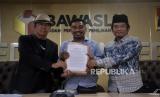 Sekretaris Jenderal Komite Independen Pemantau Pemilu (KIPP) Kaka Suminta , Direktur Kata Rakyat Alwan Ola Riantoby dan Pendiri Lingkar Madani (Lima) Indonesia Ray Rangkuti membuat pelaporan terkait dugaan adanya kampanye diluar jadwal dan penggunaan fasilitas negara di Kantor Bawaslu, Jakarta, Selasa (19/7/2022). Dalam keterangannya mereka minta kepada bawaslu segera memeriksa aktivitas Zulkilfli Hasan di Lampung pada 9 Juli 2022 lalu. Pengaduan terkait dugaan adanya pelanggaran kampanye di luar jadwal dan penggunaan fasilitas negara dan jabatanya saat berkampanye. (FOTO : Prayogi/Republika.)
