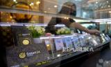 Karyawan menunjukkan logam mulia yang dijual di Galeri 24 Pegadaian, Jakarta, Selasa (19/7/2022). Dalam sepakan terakhir, harga emas lebih berkutat di zona negatif karena menguatnya dolar Amerika Serikat (AS) serta ekspektasi kenaikan suku bunga acuan bank sentral AS The Federal Reserve (The Fed). Tercatat Dalam sepekan tersebut harga emas sudah menyusut 1,05% secara point to point. Dalam sebulan, harga emas juga amblas 7,11 % sementara dalam setahun ambruk 5,78%.Prayogi/Republika. (FOTO : Prayogi/Republika.)
