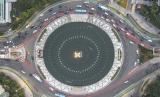 REPUBLIKA.CO.ID,JAKARTA -- Foto udara kendaraan melintas di kawasan Bundaran Hotel Indonesia, Jakarta, Selasa (19/7/2022).