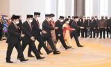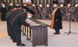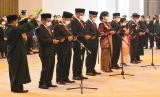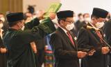 REPUBLIKA.CO.ID, JAKARTA -- Sejumlah Anggota Dewan Komisioner OJK periode 2022-2027 membacakan sumpah janji dihadapan Ketua Mahkamah Agung M. Syarifuddin di Mahkamah Agung, Jakarta, Rabu (20/7/2022). Sembilan anggota Dewan Komisioner OJK periode 2022-2027 resmi dilantik.