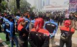 REPUBLIKA.CO.ID, JAKARTA -- Sejumlah buruh melaksanakan aksi di Balai Kota DKI Jakarta, Rabu (20/7/2022). Pada aksi tersebut mereka menuntut Gubernur DKI Jakarta Anies Baswedan untuk melakukan banding terhadap putusan PTUN yang menurunkan nilai UMP DKI Jakarta tahun 2022 dari Rp 4.641.854 menjadi Rp 4.573.845 dan mendesak pengusaha tetap membayar upah sebesar Rp 4.641.854 selama belum ada putusan di tingkat banding. Republika