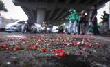 Aksi tabur bunga tersebut sebagai bentuk duka cita atas meninggalnya 11 orang korban kecelakaan maut di kawasan tersebut.