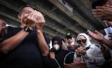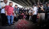 REPUBLIKA.CO.ID,BEKASI -- Sejumlah kerabat dan warga melakukan aksi tabur bunga di Jalan Transyogi, Cibubur, Bekasi, Jawa Barat, Rabu (20/7/2022).