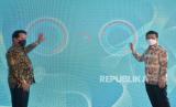 Direktur Utama Bank Syariah Indonesia Hery Gunardi (kiri) bersama Wakil Gubernur Jawa Timur Emil Dardak (kanan) meresmikan BSI UMKM Center Surabaya, Jawa Timur, Kamis (21/7/2022). BSI UMKM Center Surabaya ini merupakan salah satu upaya BSI dalam membentuk ekosistem UMKM yang unggul dan berkualitas, sehingga dapat meningkatkan kapasitas dan kapabilitas pelaku usaha. Selain itu UMKM Center BSI juga diharapkan menjadi wadah bagi pelaku UMKM agar mendapatkan pelatihan, pembinaan, pembiayaan hingga membantu proses pemasaran produk. (FOTO : Prayogi/Republika.)