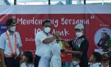 Sejumlah murid TK dan SD mengikuti acara Mendongeng Bersama 1001 Anak di Stasiun Purwokerto, Banyumas, Jawa Tengah, Kamis (21/7/2022). Acara tersebut digelar serentak di tujuh stasiun wilayah operasional PT KAI Daop 5 Purwokerto dengan tujuan untuk memperingati Hari Anak Nasional serta upaya untuk menghadirkan layanan kereta api yang ramah dan menyenangkan bagi anak-anak. (FOTO : ANTARA/Idhad Zakaria)