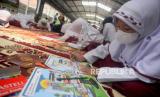 Sejumlah siswa mengikuti lomba mewarnai di Stasiun Jakarta Kota, Jakarta, Jumat (22/7/2022). KAI Commuter mengadakan kegiatan lomba mewarnai dan memberikan edukasi tentang KRL untuk mengenalkan moda transportasi kereta kepada pelajar  dalam rangka memperingati Hari Anak Nasional.  (FOTO : Republika/Putra M. Akbar)