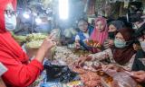 REPUBLIKA.CO.ID, BOGOR -- Menteri Perdagangan Zulkifli Hasan berbincang dengan pedagang saat meninjau harga bahan pokok di Pasar Cibinong, Kabupaten Bogor, Jawa Barat, Jumat (22/7/2022). Kunjungan kerja tersebut dilakukan untuk melihat dan memantau langsung harga bahan pokok dan minyak goreng, menurutnya harga kebutuhan pokok berangsur kembali normal di pasar tradisional.