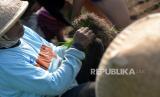 Petani mengambil bibit padi cakrabuana yang disemai dengan cara kering di Nampurejo, Purworejo, Jawa Tengah, Jumat (22/7/2022). Bisa dilakukan tidak di sawah, menyemai bibit padi cara kering mulai digemari oleh petani. Terkadang petani menyemai bibit cara kering di halaman rumah. Lama pembibitan sekitar 22 hari hingga 24 hari. (FOTO : Wihdan Hidayat / Republika)