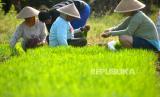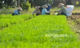 REPUBLIKA.CO.ID,PURWOREJO -- Petani mengambil bibit padi Cakrabuana yang disemai dengan cara kering di Nampurejo, Purworejo, Jawa Tengah, Jumat (22/7/2022).
