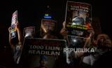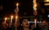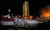 Massa menggelar aksi 1.000 lilin tragedi kematian Yosua Hutabarat di Bundaran HI..