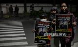Sejumlah massa aksi yang tergabung dalam Tim Advokat Penegak Hukum & Keadilanmenggelar aksi 1.000 lilin tragedi kematian Yosua Hutabarat di Bundaran HI, Jakarta, Jumat (22/7/2022). Aksi tersebut sebagai bentuk keadilan terkait tragedi kematian Brigadir Yosua Hutabarat. (FOTO : Republika/Putra M. Akbar)