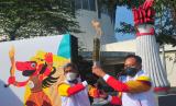 Direktur Bidang III Indonesia ASEAN Para Games Organizing Committee (INASPOC) 2022 Hendri Oka mengambil api menggunakan obor dari sumber Api Abadi Mrapen, Desa Manggarmas, Godong, Grobogan, Jawa Tengah, Sabtu (23/7/2022). Api obor tersebut kemudian dikirab melewati empat kota yaitu Semarang, Sukoharjo, Karanganyar dan berakhir di kota Solo untuk pembukaan ajang ASEAN Para Games ke-11 pada 30 Juli 2022 di Stadion Manahan Solo. (FOTO : ANTARA/Yusuf Nugroho)