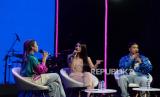 Beauty & Fashion Expert Natasha Wilona (tengah) memberikan pemaparan saat workshop Lazada Fest 2022 di Posbloc, Jakarta, Sabtu (23/7/2022). Lazada Indonesia menggelar Lazada Fest 2022 yang menghadirkan expert sharing session hingga konser musik sebagai bagian dari kampanye Tambah ke Troli, Tambah ke Hidupmu untuk menginspirasi konsumen memberikan nilai tambah pada hidup serta dukungan dalam mewujudkan passion agar keseharian menjadi semakin bermakna yang diselenggarakan hingga 24 Juli 2022. Republika/Putra M. Akbar (FOTO : Republika/Putra M. Akbar)