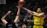 REPUBLIKA.CO.ID,JAKARTA -- Pebasket Australia Samson Tyrese Proctor (kanan) melakukan lay up ke basket Tim Nasional Selandia Baru dalam babak semi final FIBA Asia Cup 2022 di Istora Gelora Bung Karno, Senayan, Jakarta, Sabtu (23/7/2022).