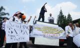 Guru honorer dari berbagai daerah di Jawa Barat menggelar aksi di depan Gedung Sate, Kota Bandung, Senin (25/7). Mereka meminta kejelasan terkait guru honorer yang sudah menjalani uji passing grade, tetapi belum kunjung diangkat menjadi Pegawai Pemerintah dengan Perjanjian Kerja (PPPK). Jumlah guru yang telah lulus passing grade di Jawa Barat mencapai 10.397 orang. Namun, hanya 6.425 yang mendapatkan kepastian penempatan. Selebihnya, belum pasti. (FOTO : Edi Yusuf/Republika)