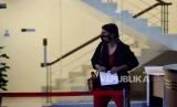 Presenter Brigita Purnawati Manohara berjalan usaia diperiksa di Gedung Merah Putih KPK, Jakarta, Senin (25/7/2022). Brigita diperiksa penyidik KPK sebagai saksi terkait kasus dugaan suap dan gratifikasi sejumlah proyek di Mamberamo Tengah, Papua yang menjerat Bupati Ricky Ham Pagawak. Namun, KPK gagal menangkap Ricky yang kabur ke Papua Nugini pada 14 Juni lalu dan saat ini KPK telah memasukan Ricky ke dalam daftar pencarian orang (DPO).  (FOTO : Republika/Thoudy Badai)