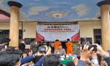Kapolres Metro Tangerang Kota Kombes Pol Zain Dwi Nugroho (tengah) saat merilis kasus pencurian dengan kekerasan/ begal dengan jumlah pelaku sebanyak enam orang di Mapolsek Neglasari, Kota Tangerang, Senin (25/7/2022). (FOTO : Republika/Eva Rianti)