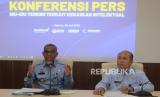 REPUBLIKA.CO.ID,JAKARTA -- Plt Dirjen Kekayaan Intelektual (KI) Kemenkumham Razilu didampingi Kepala Biro Humas, Hukum dan Kerja Sama Kemenkumham Hantor Situmorang menyampaikan konferensi pers isu-isu terkini terkait kekayaan intelektual di Jakarta, Selasa (26/7/2022).