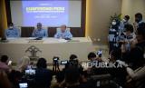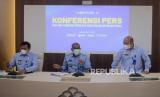 Plt Dirjen Kekayaan Intelektual (KI) Kemenkumham Razilu (tengah) didampingi Direktur Merek dan Indikasi Geografis Kemenkumham Kurniaman Telaumbanua (kiri) dan Kepala Biro Humas, Hukum dan Kerja Sama Kemenkumham Hantor Situmorang (kanan) menyampaikan konferensi pers isu-isu terkini terkait kekayaan intelektual di Jakarta, Selasa (26/7/2022). Razilu menekankan bahwa semua orang berhak mengajukan permohonan kekayaan intelektual (KI) termasuk merek, namun demikian tidak semua permohonan merek dapat disetujui atau dikabulkan. Republika/Putra M. Akbar (FOTO : Republika/Putra M. Akbar)