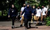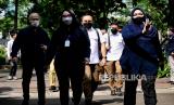 Ajudan Kadiv Propam nonaktif Irjen Pol Ferdy Sambo saat tiba untuk memenuhi panggilan Komnas HAM, di kantor Komnas HAM, Jakarta, Selasa (26/7/2022). Komnas HAM memanggil seluruh aide de camp alias ajudan Ferdy Sambo termasuk Baradha E yang diduga sebagai penembak dalam kasus kematian Brigadir J. Namun menurut Ketua Komnas HAM, Ahmad Taufan Damanik, Bharada E belum menghadiri panggilan tersebut. (FOTO : Republika/Thoudy Badai)