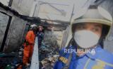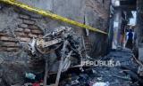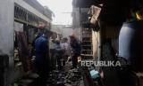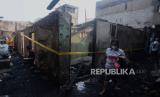 REPUBLIKA.CO.ID, JAKARTA - - Petugas Damkar membawa tangga pasca kebakaran di Jalan Sawah Lio, Tambora, Jakarta Barat, Selasa (26/7/2022). Sebanyak 48 rumah hangus terbakar dan 300 warga terdampak akibat kebakaran yang diduga diakibatkan korsleting listrik dari kontrakan tak dihuni.