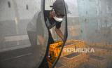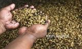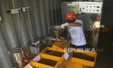 Petugas mengolah ulat maggot (belatung black soldier fly) menggunakan mesin di Bank Sampah Paccerakkang, Makassar, Sulawesi Selatan, Selasa (26/7/2022). Budidaya ulat maggot dari pemanfaatan limbah tersebut digunakan sebagai pakan ternak dan minyak bahan dasar kosmetik. (FOTO : ANTARA/Abriawan Abhe)