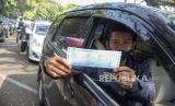 Warga menunjukkan surat keterangan uji emisi gas buang kendaraan bermotor di Taman Balai Kota Bandung, Jalan Wastukencana, Kota Bandung, Rabu (27/7/2022). Pemerintah Kota Bandung bersama Dinas Lingkungan Hidup Kota Bandung dan Dinas Perhubungan Kota Bandung menggelar uji emisi secara gratis sebagai upaya penerapan kawasan emisi bersih sekaligus memperingati Hari Lingkungan Hidup Sedunia 2022. Foto: Republika/Abdan Syakura (FOTO : REPUBLIKA/ABDAN SYAKURA)