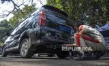 Petugas melakukan uji emisi gas buang kendaraan bermotor di Taman Balai Kota Bandung, Jalan Wastukencana, Kota Bandung, Rabu (27/7/2022). Pemerintah Kota Bandung bersama Dinas Lingkungan Hidup Kota Bandung dan Dinas Perhubungan Kota Bandung menggelar uji emisi secara gratis sebagai upaya penerapan kawasan emisi bersih sekaligus memperingati Hari Lingkungan Hidup Sedunia 2022. Foto: Republika/Abdan Syakura (FOTO : REPUBLIKA/ABDAN SYAKURA)